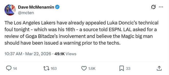 ESPN名記Dave McMenamin跟進(jìn)曝出,湖人隊(duì)已經(jīng)向聯(lián)盟提交上訴,要求對(duì)比塔澤行為進(jìn)行復(fù)查的同時(shí),認(rèn)為裁判在吹罰T之前應(yīng)當(dāng)先警告。