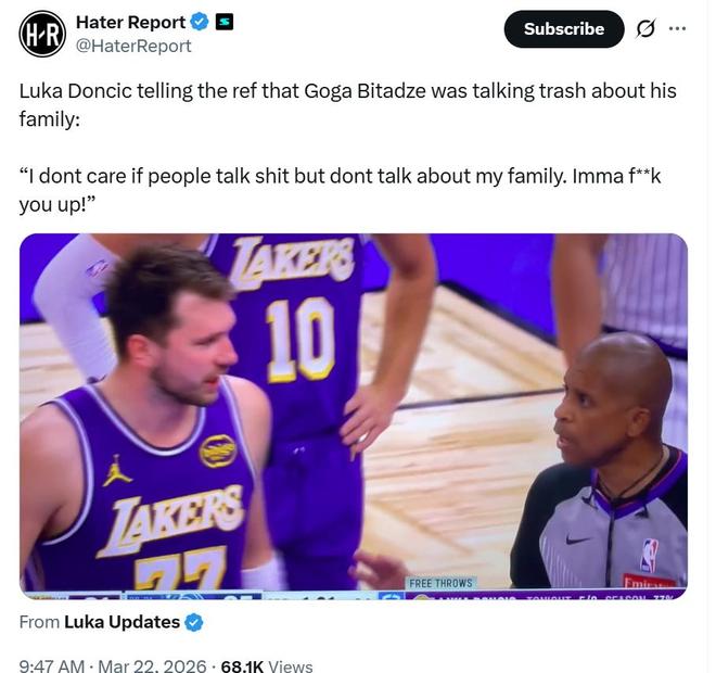 是被辱罵家人暴怒還是互噴先惹事?東契奇吃到賽季第16個(gè)T面臨禁賽事件陷入羅生門(mén)!事件三方先后公開(kāi)發(fā)聲各執(zhí)一詞,湖人被曝已上訴。