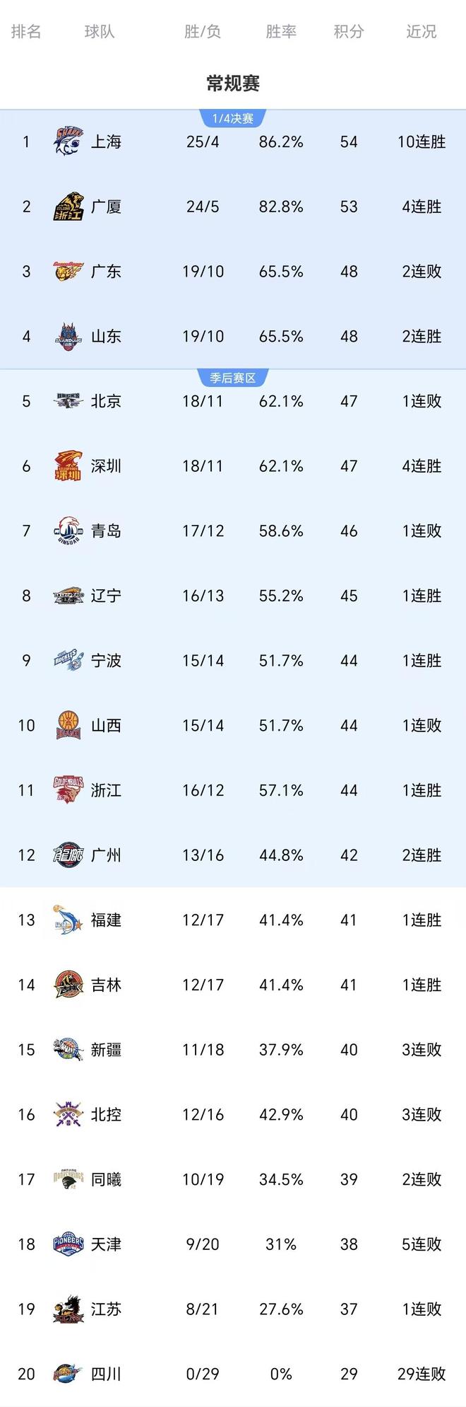 - CBA最新排名:廣東前三位置不穩,上海10連勝領跑,新疆又掉隊