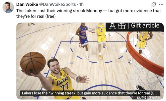 湖人隊資深記者丹·沃伊克(Dan Woike)發表了一篇題為《湖人連勝告終,卻為實力再添有力注腳》的文章,全文內容如下: