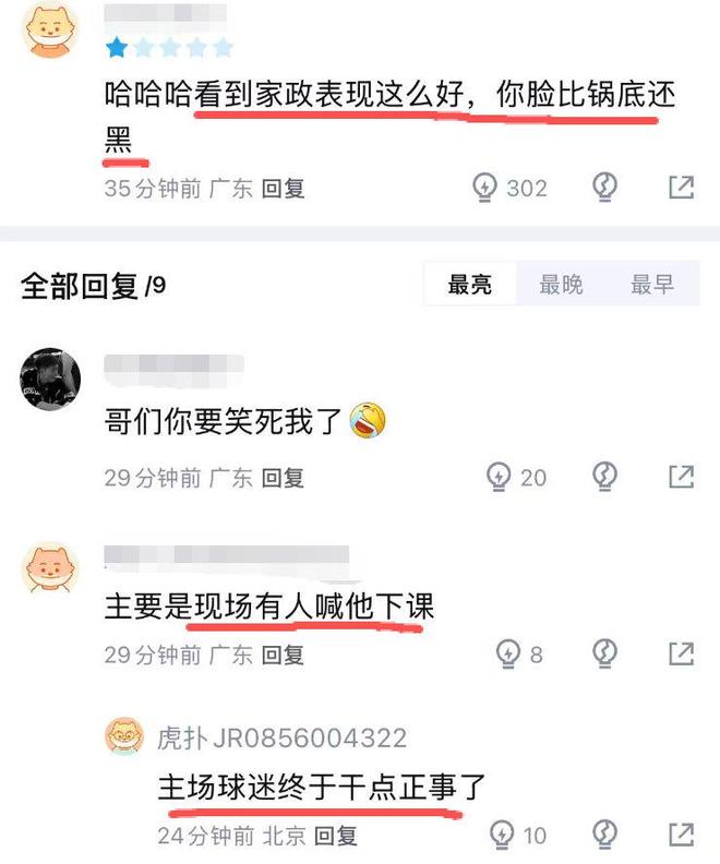 令人唏噓的是,看到陳家政打得如此出色,現場鏡頭給到主帥杜鋒時,后者則是滿臉不悅。有球迷稱:有現場的主場球迷喊起了”杜鋒下課“的呼聲。