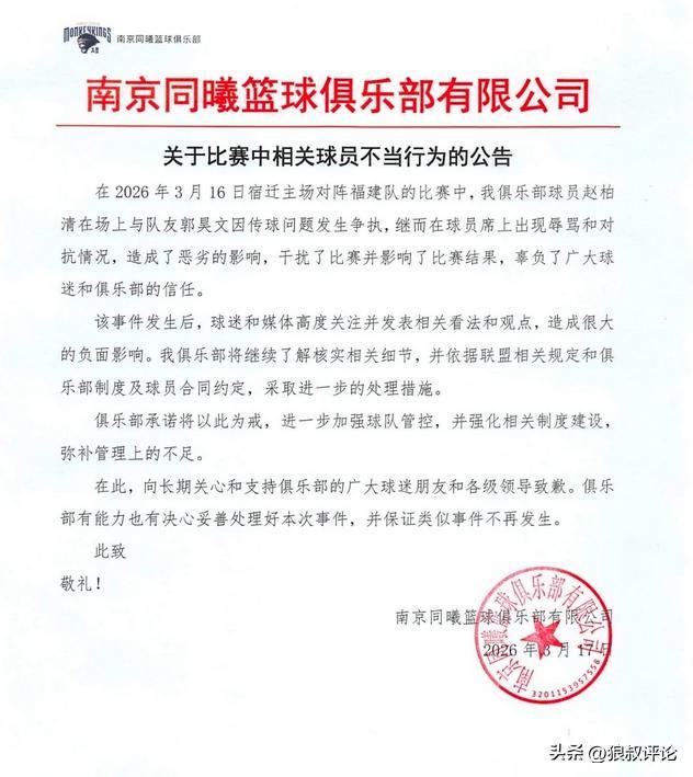 南京同曦籃球俱樂部始終高度重視運動員的身心健康,后續我們將及時向公眾通報他的恢復情況,祝愿昊文早日重返賽場與兄弟們并肩奮戰。
