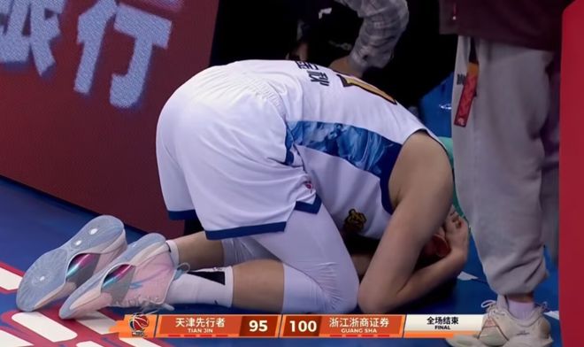 在比賽勝負已定的情況下,大衛詹姆斯依舊奮力防守,但這次他沒有防對地方,在封蓋胡金秋的過程中,直接一巴掌拍中了大秋的腦門,胡金秋應聲倒地不起,跪倒在地上捂著腦袋久久無法起身,而離譜的是,裁判當時就站在底角,也清楚目睹了這一切,卻沒有響哨,一點表示都沒有。