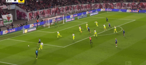 第20分鐘,迪奧曼德晃動(dòng)送助攻,鮑姆加特納破門,萊比錫1-0多特