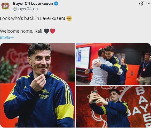 勒沃庫森官推賽前歡迎哈弗茨回家,并且賽前還為哈弗茨送上了紀念品。