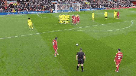 第18分鐘,利物浦獲得前場任意球,索博斯洛伊的射門繞過人墻,打出電梯球的效果,皮球急速下墜,維卡里奧撲救不及,利物浦取得領先。