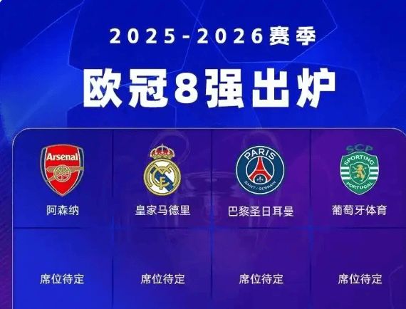 - 歐冠8強(qiáng)已定4席:阿森納戰(zhàn)葡體 皇馬大概率碰拜仁