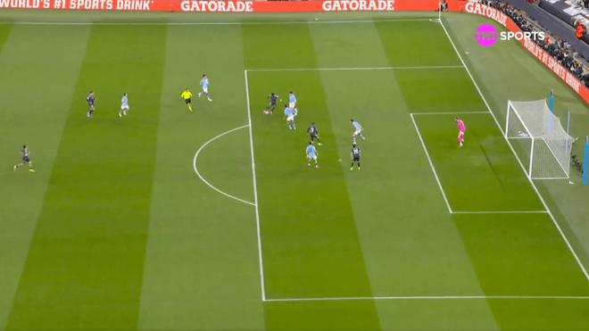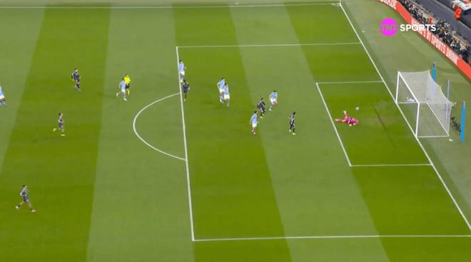 第17分鐘,巴爾韋德為這次進(jìn)攻注入了速度,他帶球越過中線,隨后送出一記穿透曼城防線的傳球,讓維尼修斯前插。