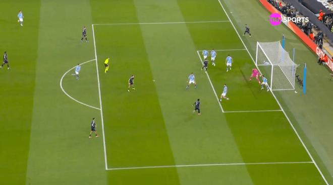 助理裁判舉旗示意越位,但當(dāng)時不清楚判的是維尼修斯(從巴爾韋德傳球時看,他似乎并未越位)還是卜拉欣——巴爾韋德最初傳球時,他處在曼城防線身后。