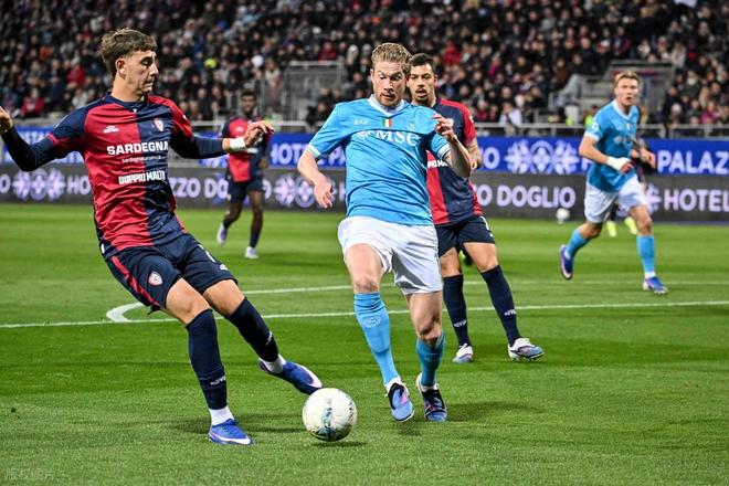 那不勒斯近幾輪踢得有些磕磕絆絆,不過還好總能 贏球,此前3輪他們都是2:1一球小勝。今天作客撒丁島競技場對陣卡利亞里,那不勒斯再次上演 一球小勝。開場僅僅1分鐘,那不勒斯右側角球機會,一個戰術配合,波利塔諾兜傳后點,別克馬搶點頭球往門前頂,布翁焦爾諾接球轉身往門前掃,一片混亂中曼聯舊將麥克托米奈將球捅入網窩,那不勒斯1:0取得夢幻開局。