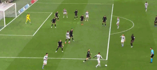 第38分鐘,薩帕塔突入禁區射門,球被邁尼昂擋出