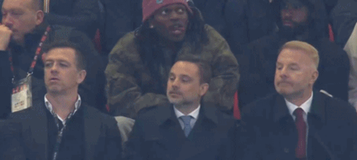 鏡頭給到缺陣的萊奧,本場比賽在看臺觀戰