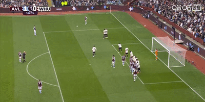 上半場補時階段,維拉前場右側開出角球,沃特金斯高高躍起,結果在馬夫羅帕諾斯的干擾下將球頂高。