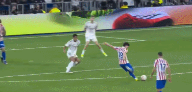 比賽開打僅3分鐘,皇馬就通過威尼修斯的左路強(qiáng)突制造險(xiǎn)情,隨后巴爾韋德的暴力遠(yuǎn)射擊中立柱。伯納烏的節(jié)奏從開場就被拉到極限,但真正先破門的卻是馬競。