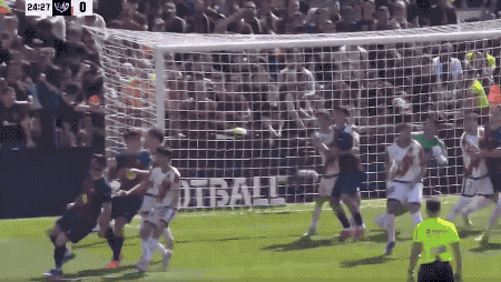 好在4分鐘后,坎塞洛開出角球,阿勞霍高高躍起頭槌破門,巴薩1-0打破僵局。