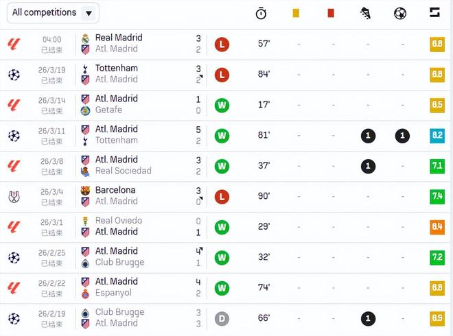 馬競與皇馬的德比戰上,他們半場1比0領先,一度場面上優勢不小,結果下半場一開場,就因為點球和中衛失誤被皇馬快速逆轉比分,哪怕莫利納用遠射世界波扳平,但最終11打10的馬競還是2比3輸球。