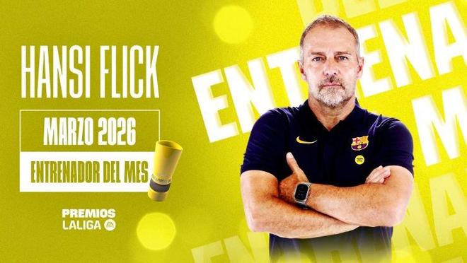 弗里克被評為西甲聯賽3月最佳教練。巴塞羅那足球俱樂部3月表現出色,三戰全勝,繼續領跑積分榜。